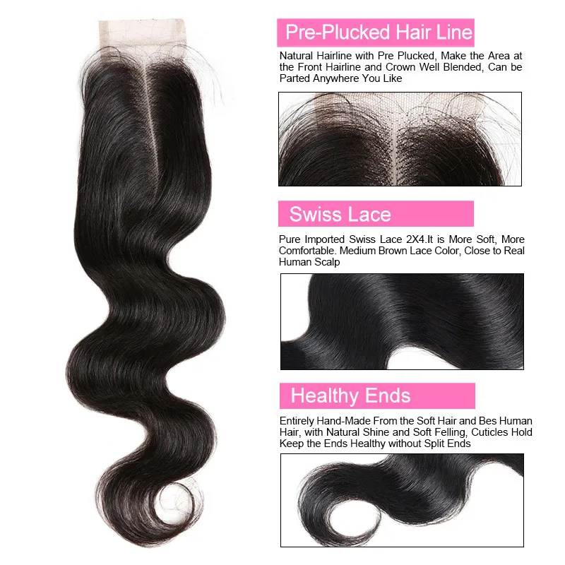 ORIGINAL Lolly Hair Brazilian Body Wave Lace Closure 2X4 Inch Middle Part Closure With Baby Hair 100% Remy H