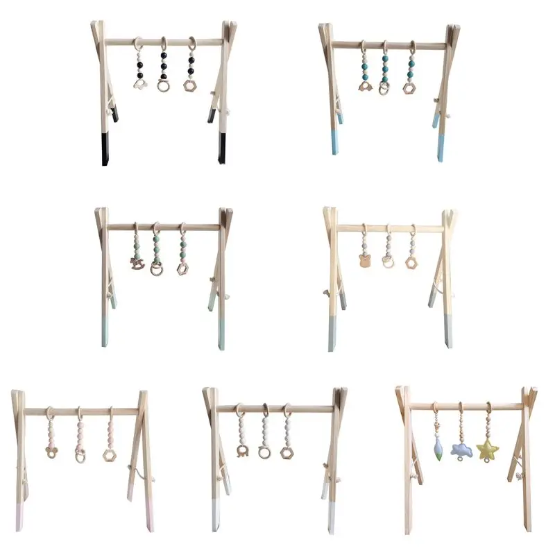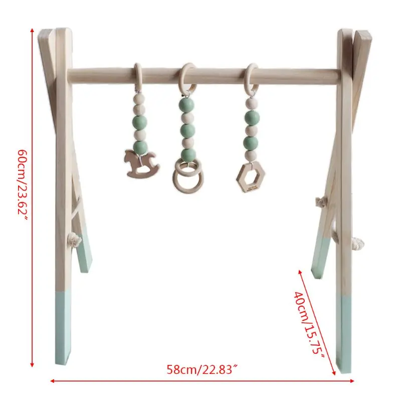 Nordic Style Baby Gym Play Frame Wooden Infant Nursery Sensory Ring-pull Toy